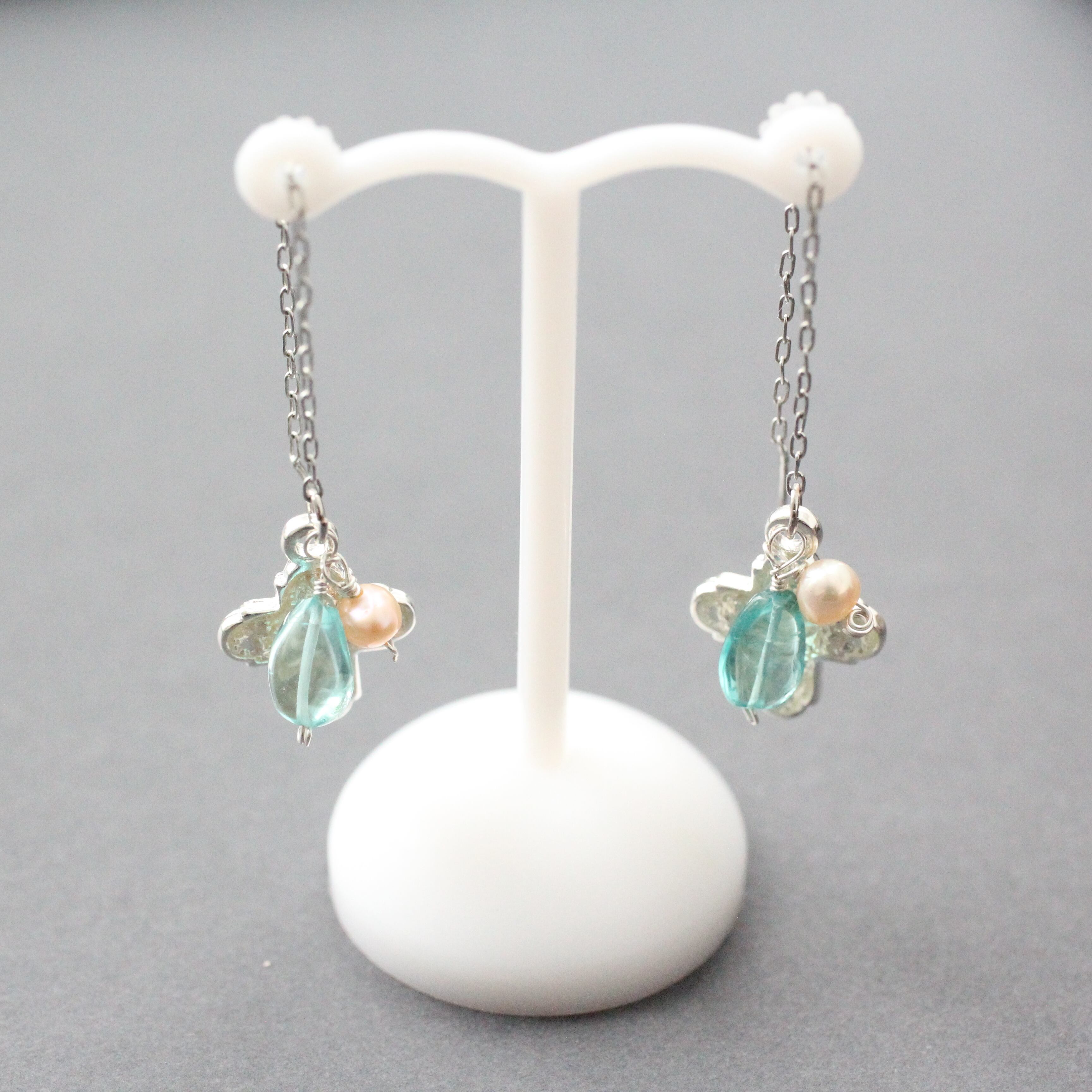ピアス【アパタイト・淡水パール・メタルクロス】