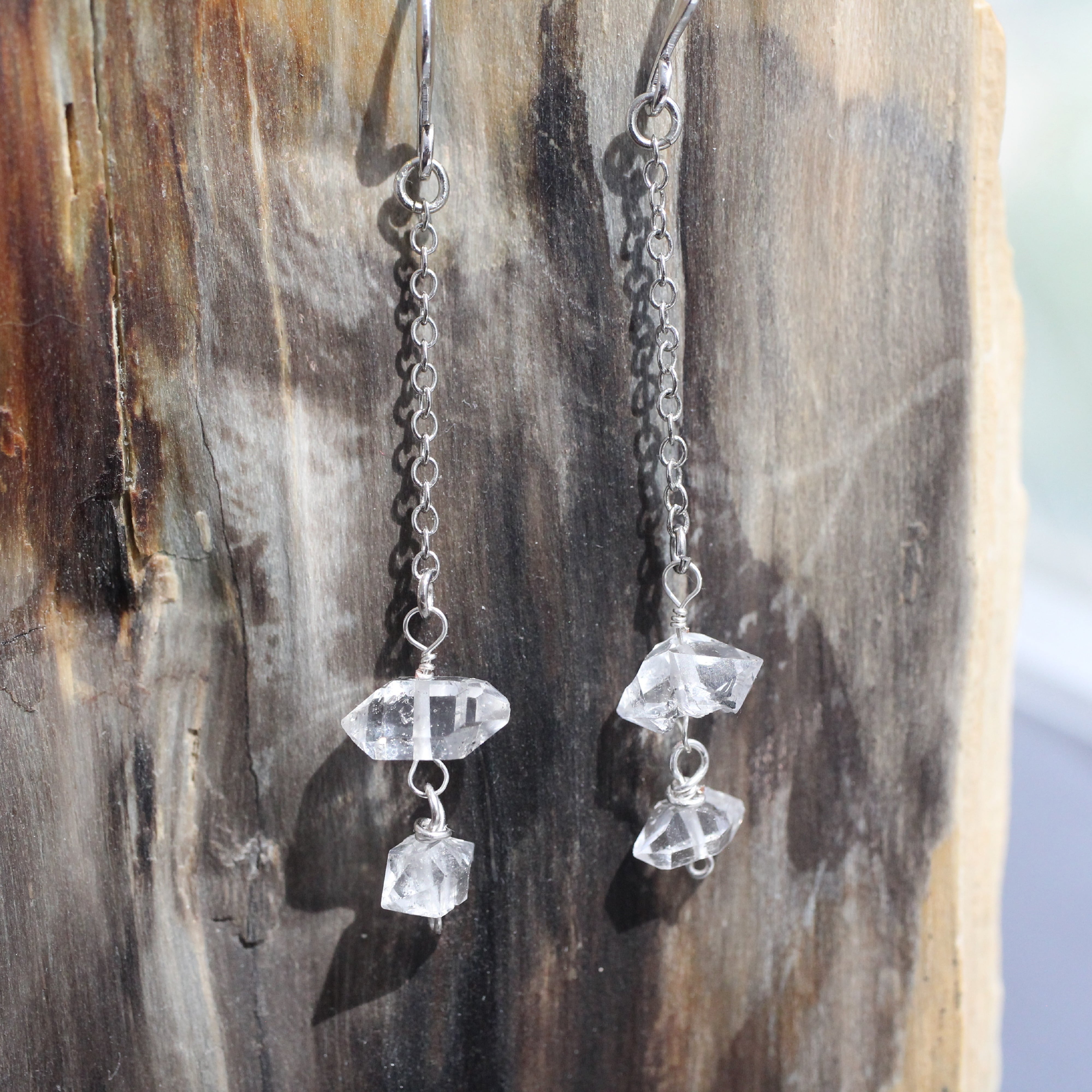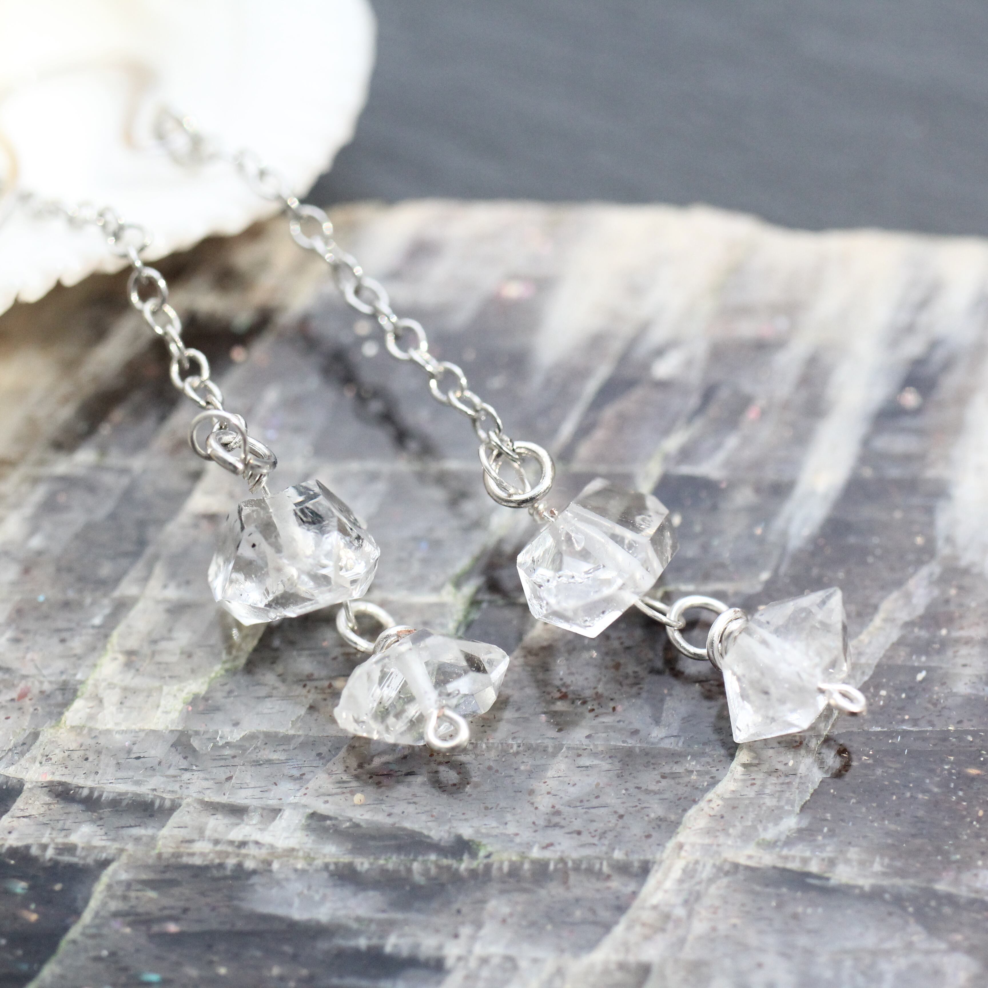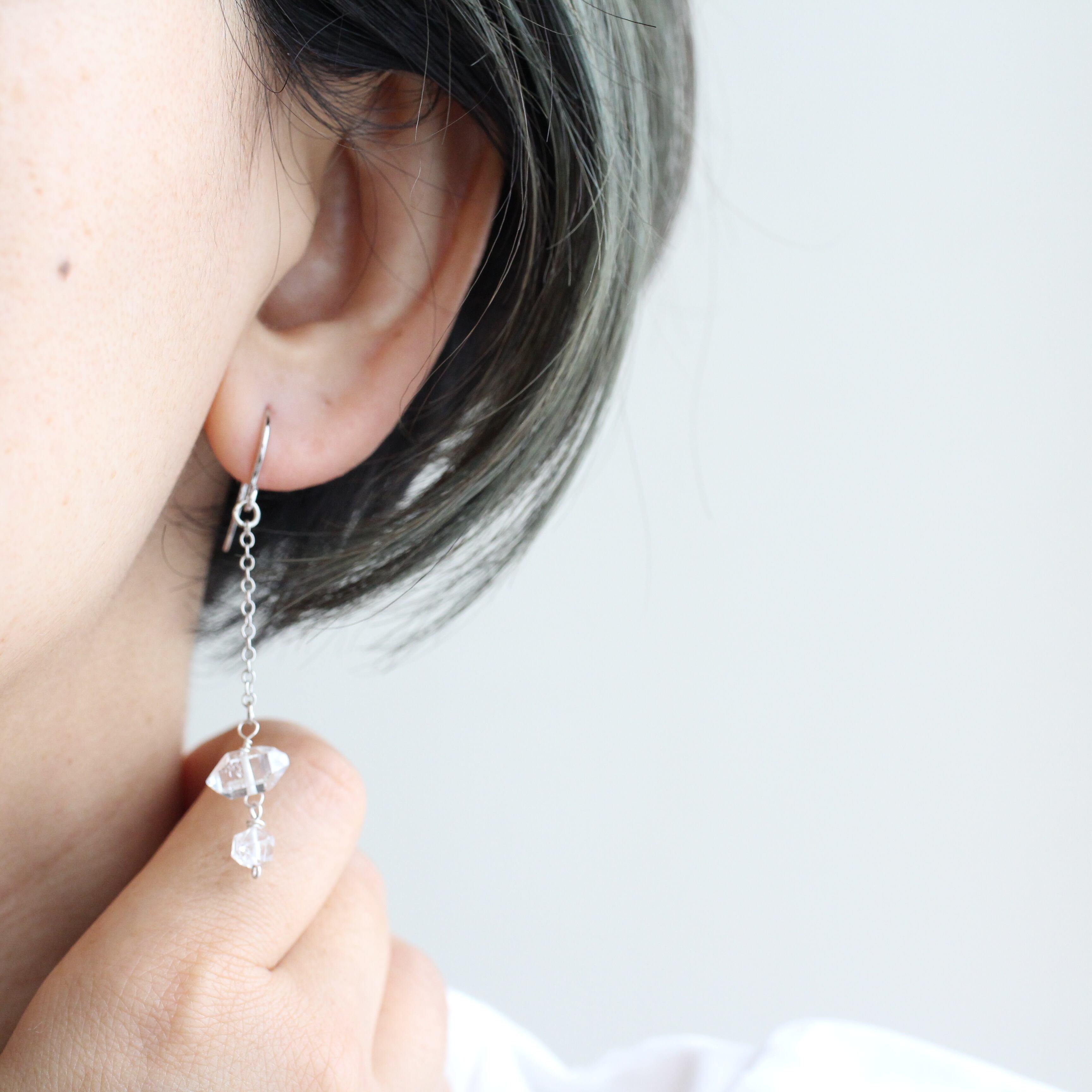 ハーキマーダイヤモンドはニューヨーク州のハーキマー鉱山産出の水晶の名称で、特に輝きが美しいと評価されています。 揺れるピアスで輝きを楽しんでいただきたいと思います。 ★Size:耳のピアスホールから一番下まで約6㎝ ※イヤリングへの変更を無料で承りますので、ご要望の旨をご購入ページの備考欄にご記入ください。