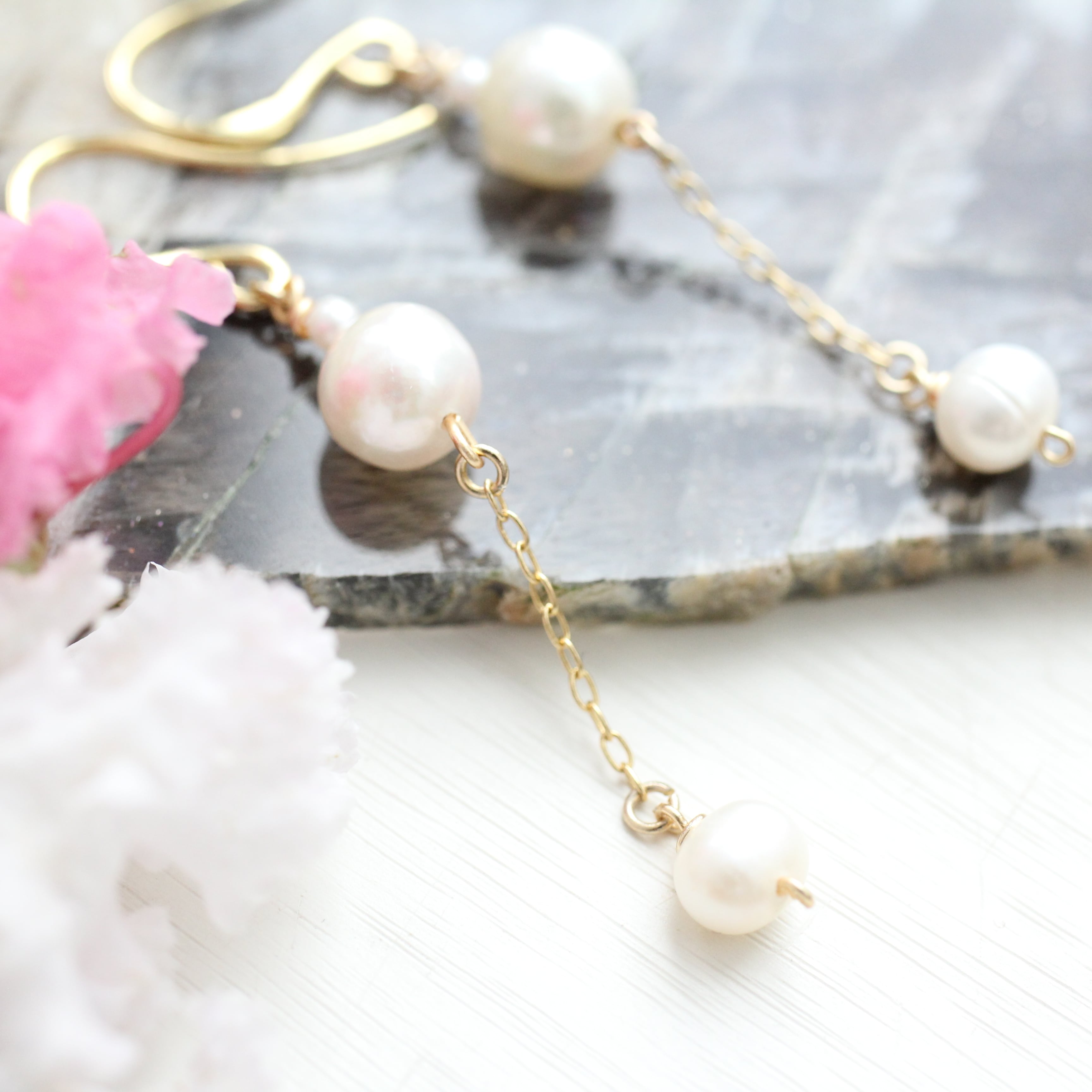 下に揺れる淡水パールを付けました。