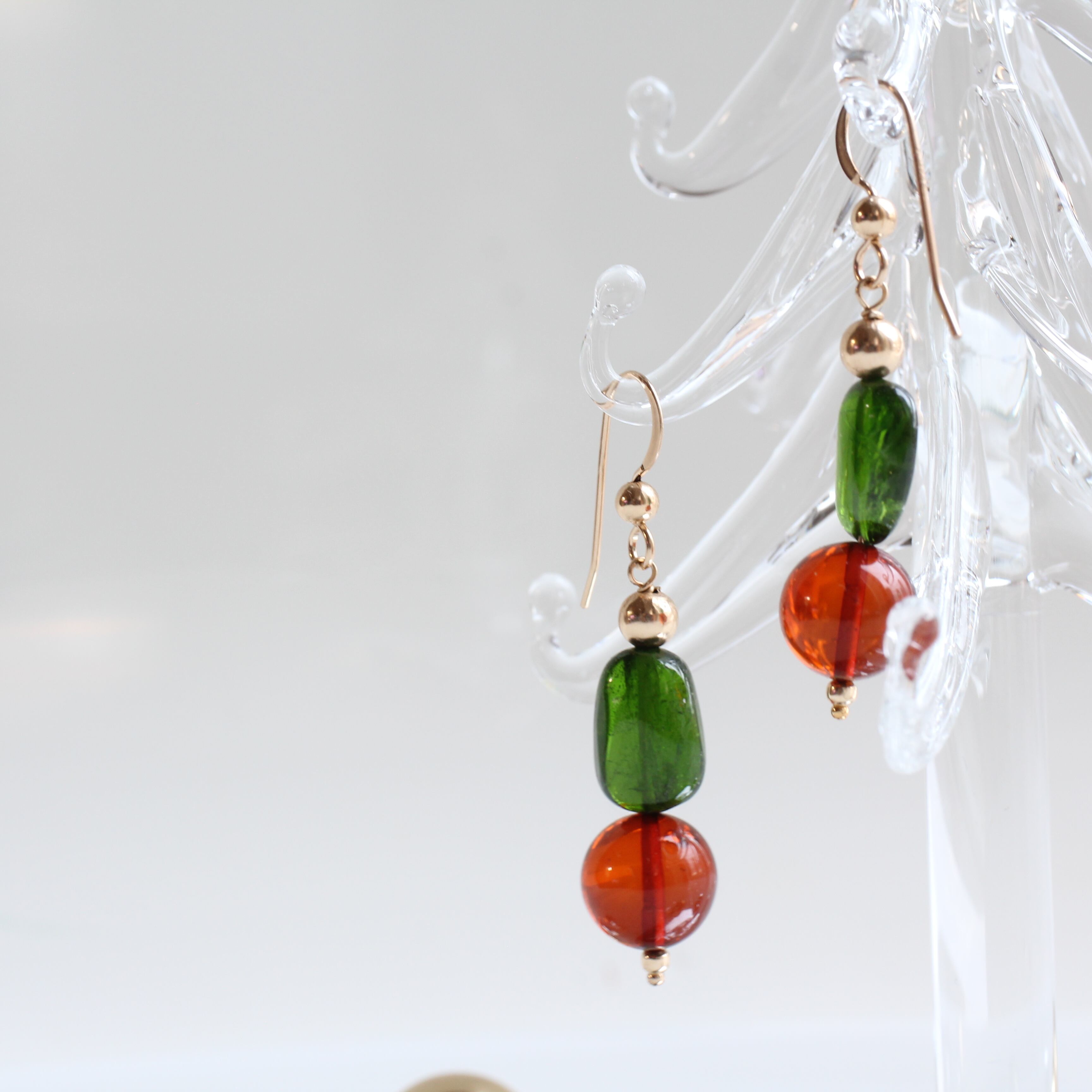 ピアス【クロムダイオプサイト・アンバー】14kgf
