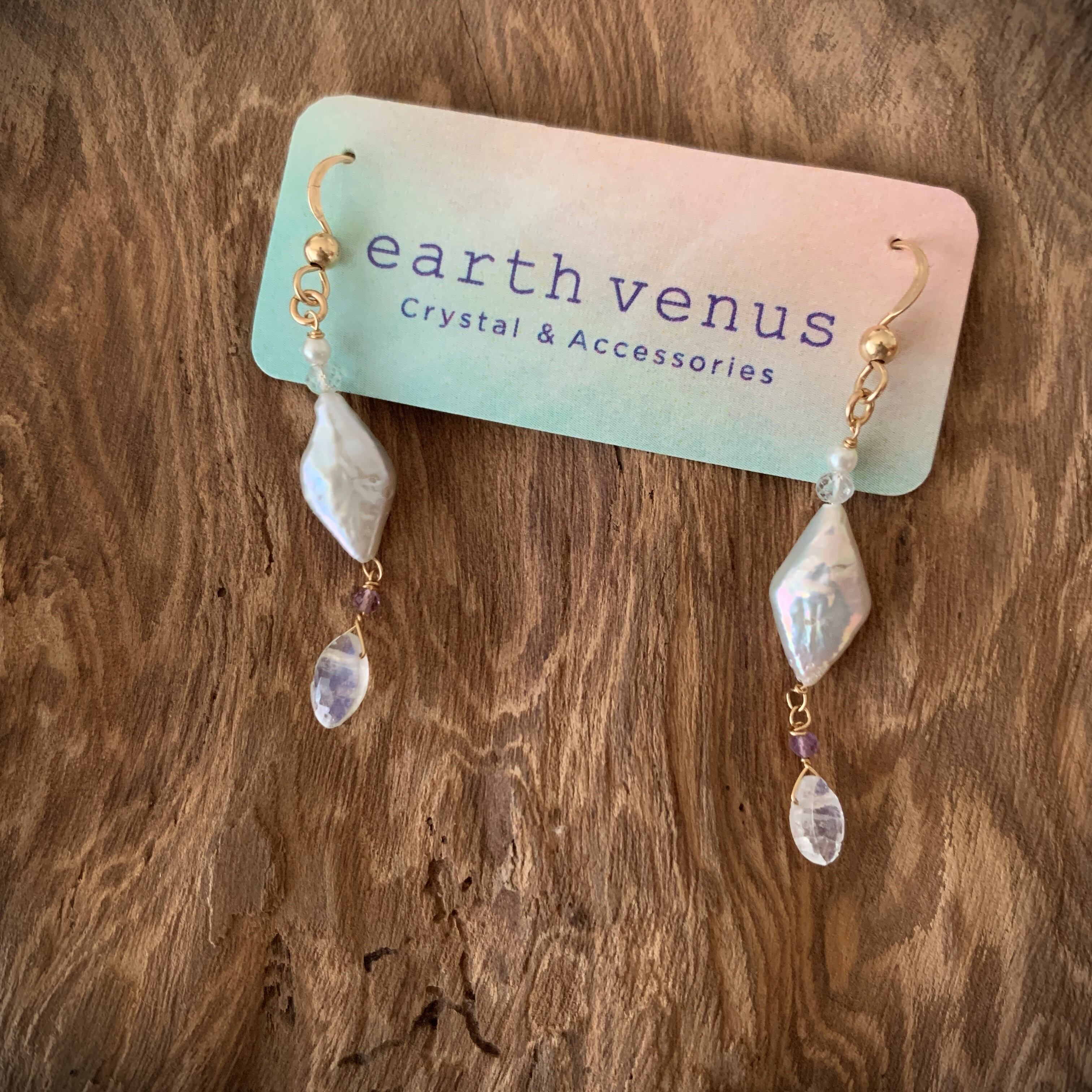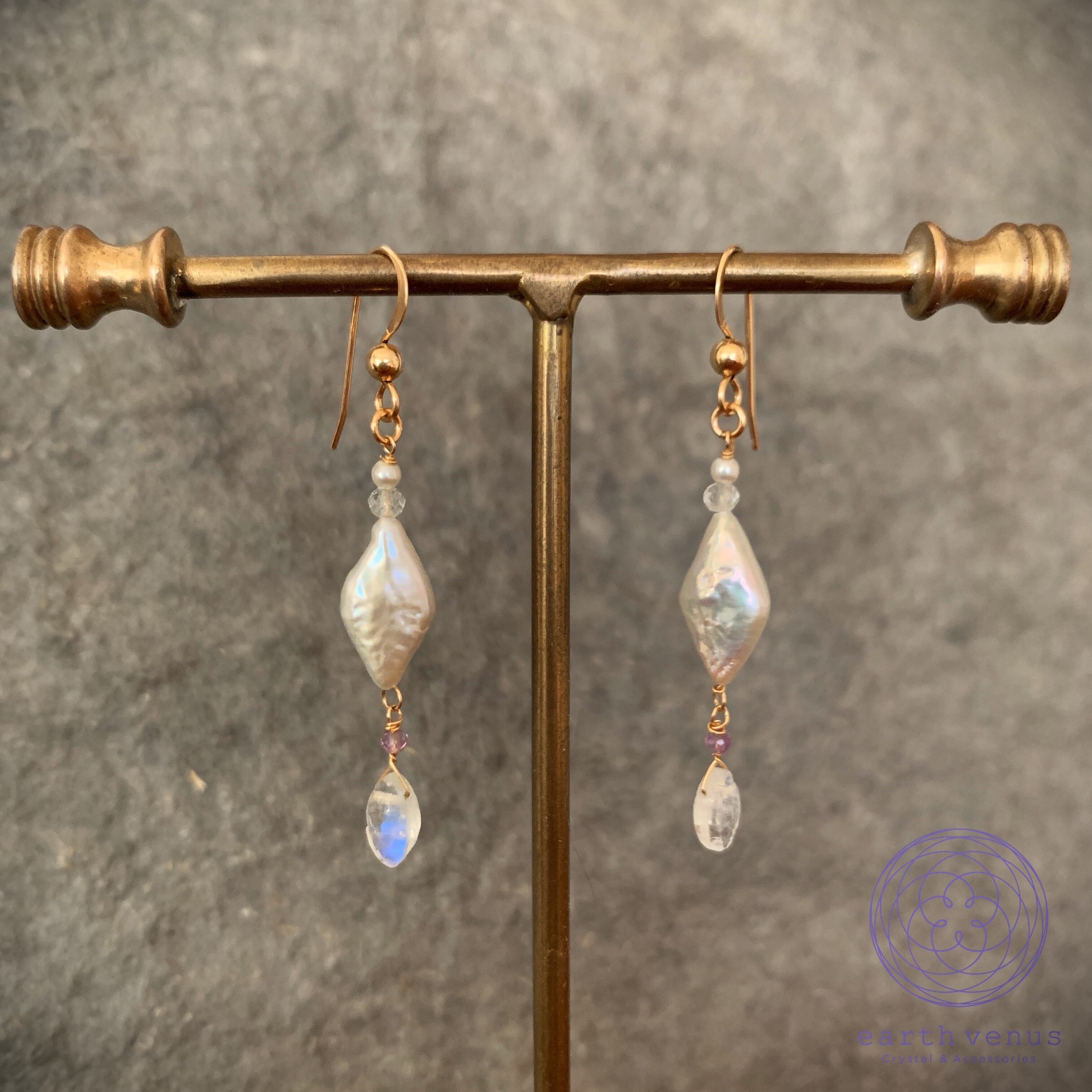 ピアス【淡水パール・ブルームーンストーン】14kgf